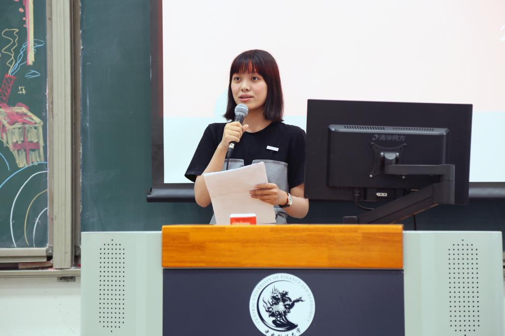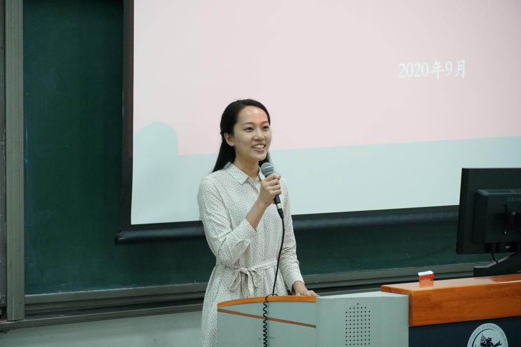 2020级许国志大数据英才班张君玉代表本科生发言。她对老师、高年级同学开学以来的关心照顾表示了感谢,并决心在大学这个新的起点上,依托公司和公司的广阔平台,提升自我修养,扎实学科基础,牢记时代使命,在中财大的四年中,知行合一,砥砺前行。