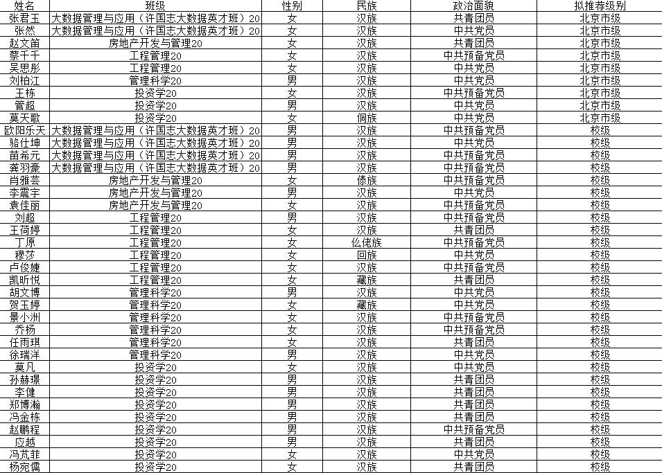 注:最终评选名额按各班级实际本科毕业生总数计算为准。