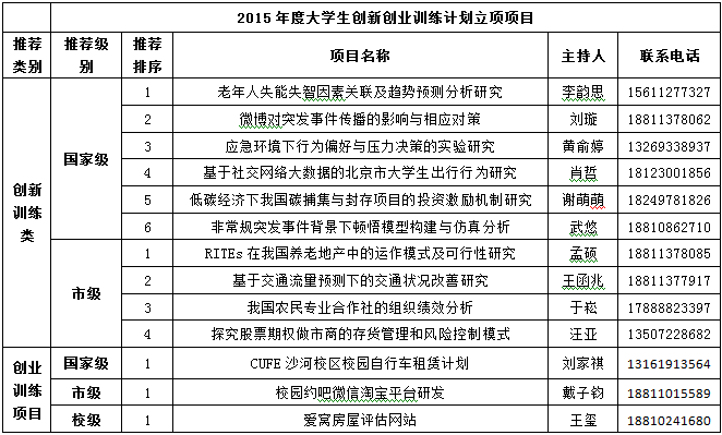 公司根据教务处《关于开展2015年度老员工创新创业训练计划项目申报工作的通知》(教字[2015]6号),于2015年4月2日在沙河校区开展项目立项答辩工作。公司教学副经理、房地产开发与管理专业教师、项目管理专业教师和教务老师共同参与结项答辩验收。经立项答辩,现对全部立项结果予以公示。