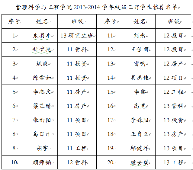 公司于12月4日开始组织进行2013-2014年度“北京市三好员工”、“北京市先进班集体”、“xcsports三好员工”、“xcsports双优班集体”,以及2014年度“xc体育优秀员工干部”的申报和评选推荐工作。申报过程中,共收到各项申报材料:北京市三好员工11份,北京市先进班集体7份,校级三好员工20份,校级双优班集体11份,院级优秀员工干部44份。公司于12月11日上午召开院员工工作领导小组会议,讨论评选各奖项名单。经反复讨论、充分比较,产生如下推荐和表彰名单。现予公示。