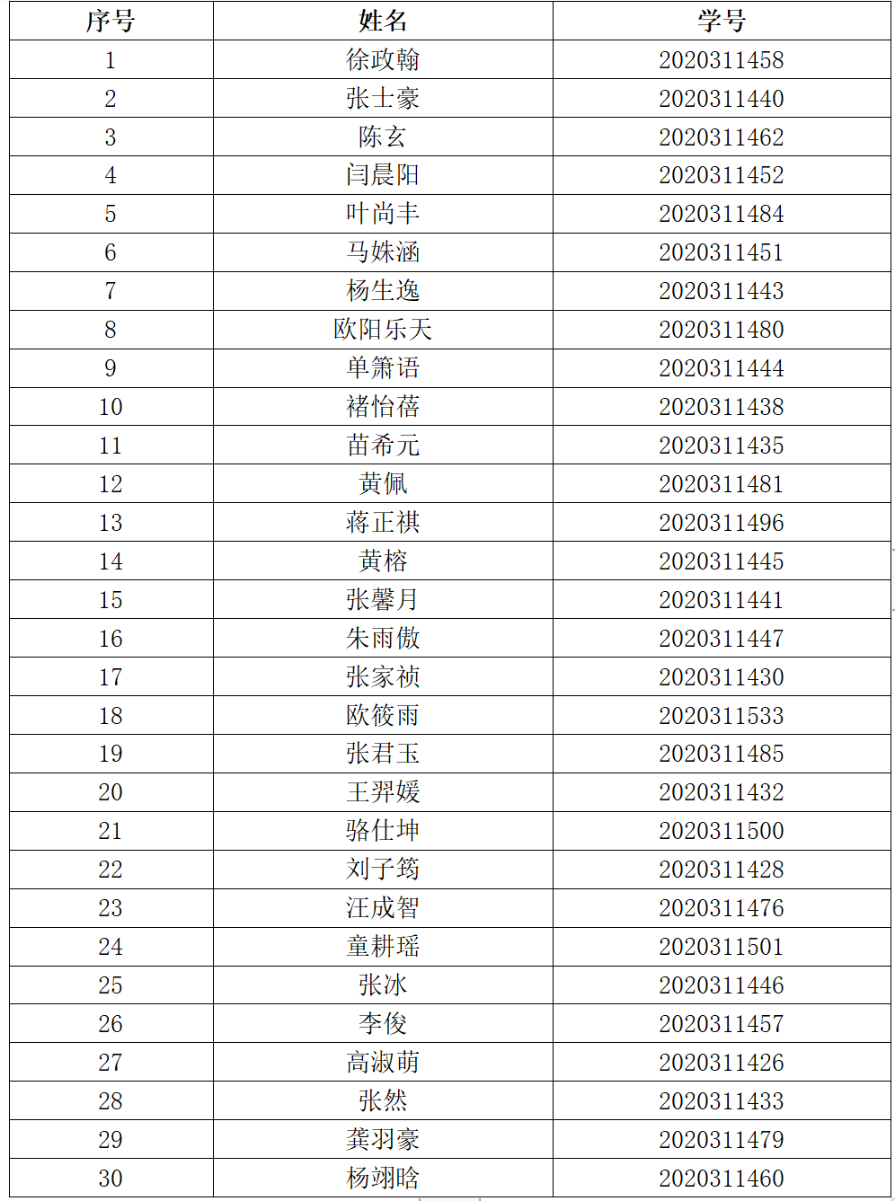 根据《xcsports“许国志大数据英才班”选拔办法》的有关工作要求,经过新生报名、笔试,经选拔考试工作小组审议确认从87名管理科学与工程大类2020级新生中选拔30名同学进入“许国志大数据英才班”学习,现将名单公示如下。公示日期为2020年9月19日-2020年9月24日。公示期间如有异议,请在办公时间到xcsports沙河校区4号公司楼326房间联系反映,联系人井帅老师。