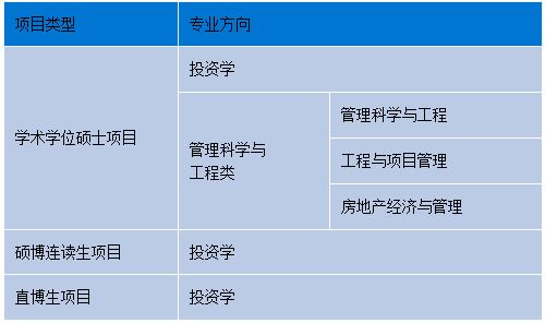 本专业研究方向有投融资理论与实务、投资银行理论与实务、投资决策与风险管理、基本投资与科技创新等。硕士专业学习期限为二年,授予经济学硕士学位。毕业生广泛就职于证券、基金、政策性银行及各大商业性银行、大型国有企事业单位等。