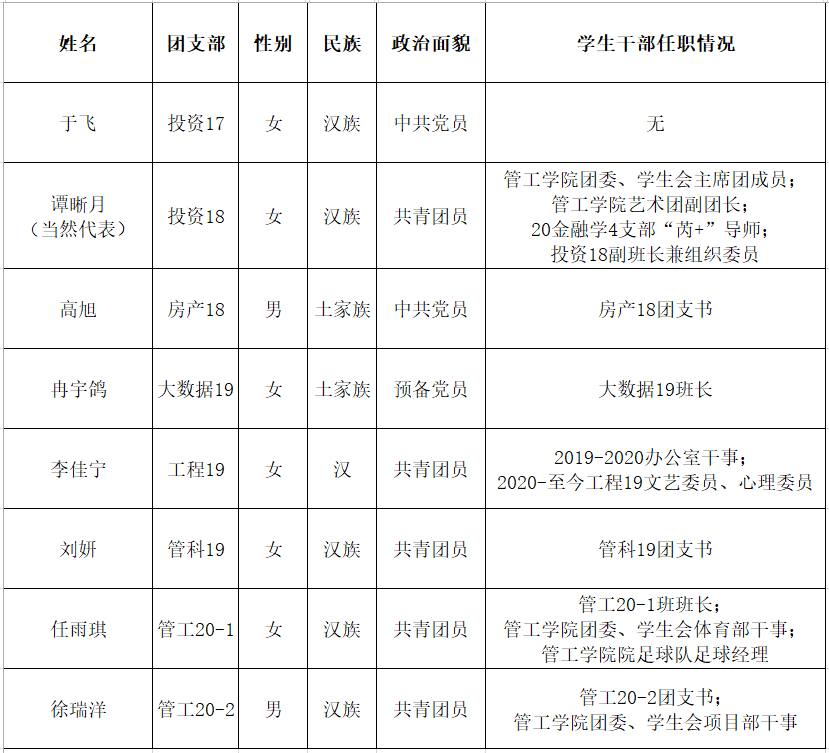 第二十七次研究生代表大会公司代表名单及相关信息如下: