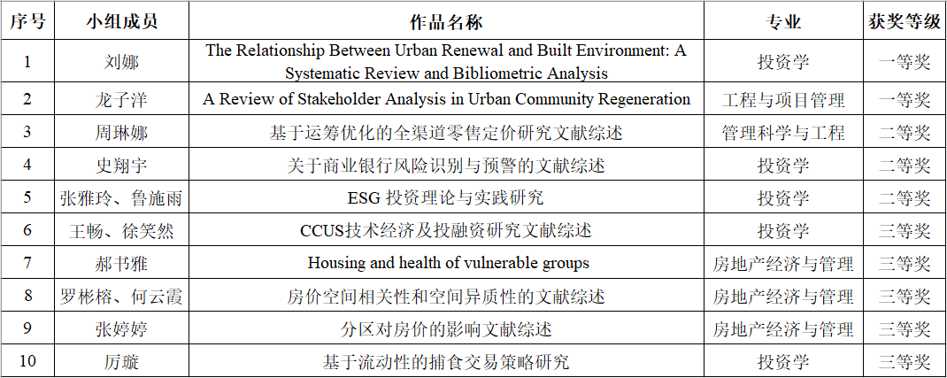 6月2日,终审答辩会拉开序幕。公司投资系郭建老师、城市与房地产管理系王优容老师、工程管理系高然老师、管理科学系刘赫老师,担任本场答辩会评委。答辩共分为四个环节:各组展示、评委提问、评委点评和大赛结果公布。首先,由各组参赛选手根据抽签顺序进行限时7分钟的现场展示,然后由评审老师针对文献综述和展示环节内容进行提问,参赛选手逐一进行答辩,评审老师依据评审细则对各组论文进行打分。答辩环节,评审老师们从文献综述的内容、格式规范、引用文献的科学与代表性、全面性以及研究问题的前沿性与重要性等方面与选手进行了深入细致的交流,并对文献综述的写作提出了专业的意见和建议。