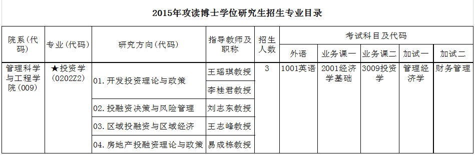 2015年攻读博士学位研究生招生专业目录