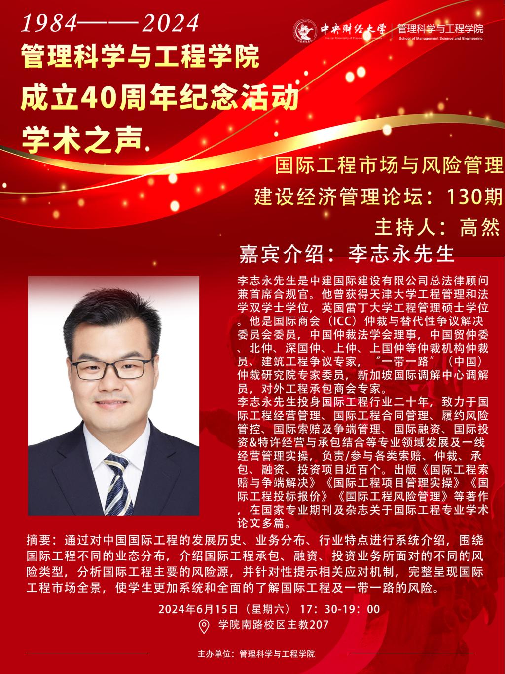 李志永先生投身国际工程行业二十年,致力于国际工程经营管理、国际工程合同管理、履约风险管控、国际索赔及争端管理、国际融资、国际投资&特许经营与承包结合等专业领域发展及一线经营管理实操,负责/参与各类索赔、仲裁、承包、融资、投资项目近百个。出版《国际工程索赔与争端解决》《国际工程项目管理实操》《国际工程投标报价》《国际工程风险管理》等著作,在国家专业期刊及杂志关于国际工程专业学术论文多篇。