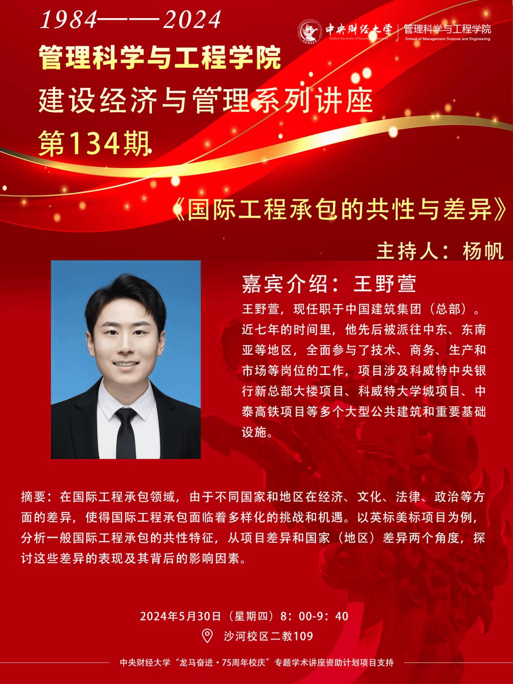 讲座时间:2024年5月30日(星期四)8:00-9:40