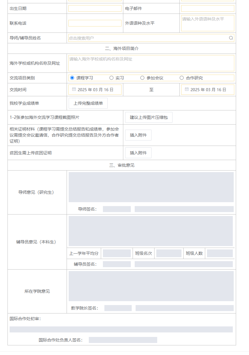 15.xcsports赴国(境)外学期交流学习申请(离校手续)