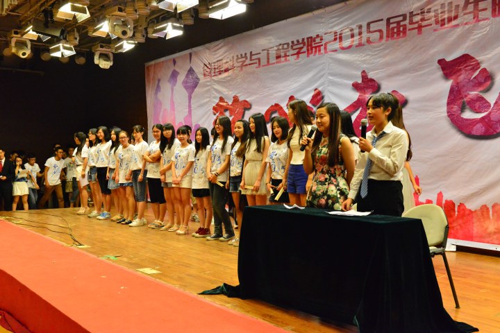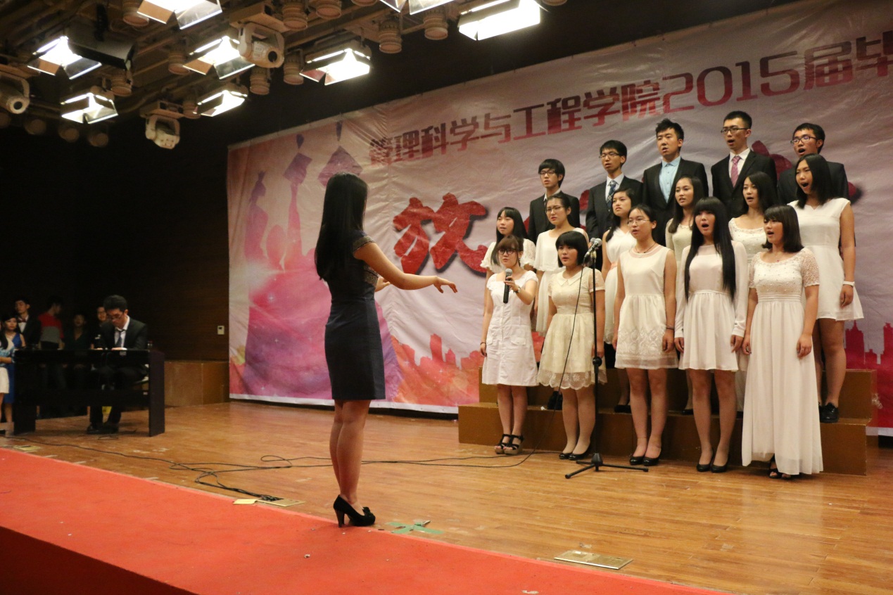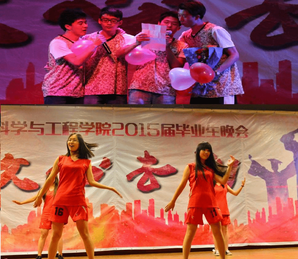 随后,项目11班的秦越为我们带来了一首《南方姑娘》,悠扬的曲调,富有磁性的声音,仿佛真的将一位美丽多情的南方姑娘带到我们面前。自古英雄难过美人关,然而兄弟情义更是地久天长。上下铺兄弟蒋子涵和海沙尔·叶尔肯深情献唱《睡在我上铺的兄弟》,不知是灯光刺痛了眼,还是离别刺痛了心,两个铁血男儿眼里竟泛起了点点泪光。研究生学长黄国庆的《天高地厚》铿锵有力,道出了毕业生们放飞梦想的勇气;项目班的歌曲串烧《这些年》温馨绵长,回顾了四年来相识相知相离的苦辣酸甜。工程11的唯美合唱告诉我们,花开花谢,潮起潮落,唯念君安,爱,因为在心中。
