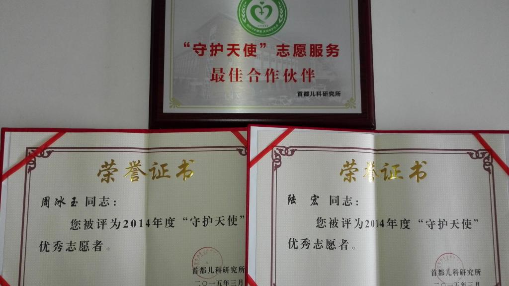3月27日下午,首都儿科研究所举办“‘守护天使’2014年志愿服务总结暨分享交流会”,公司作为首都儿科研究所“守护天使”志愿服务合作单位和志愿服务岗认领单位,团总支书记薄璐应邀参加了该场交流会。在交流会上,公司与中国青年政治公司社会工作公司等13家单位被首都儿研所评选为“‘守护天使’志愿服务最佳合作伙伴”,同时公司13级项目管理班周冰玉、14级项目管理班陆宏两位同学因其一年来优秀的表现,被评为“‘守护天使’优秀志愿者”。