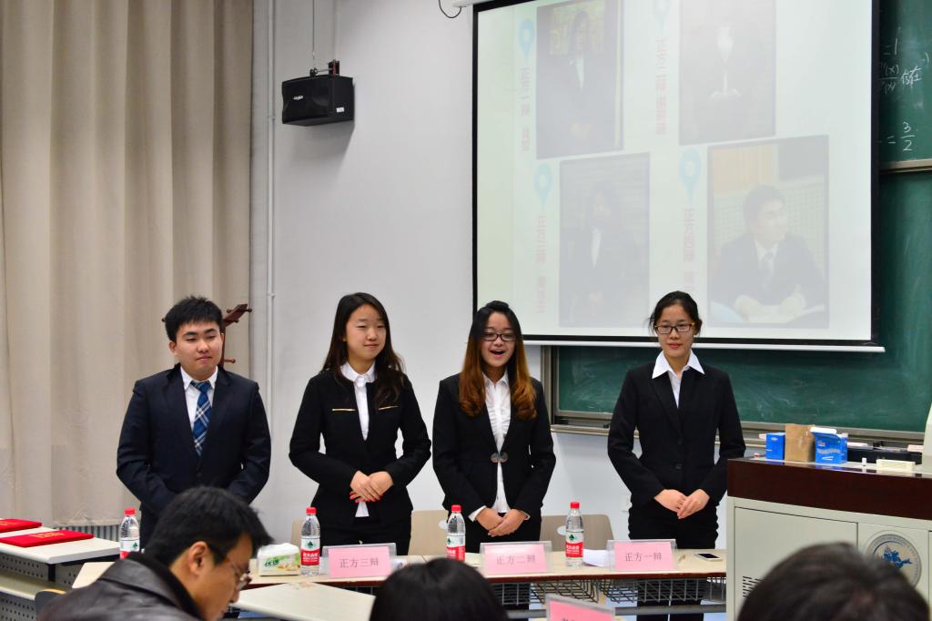 在简短却不失特点的自我介绍之后,双方即围绕辩题开始了他们精彩的表现。经过立论及质询、对辩及对辩小结、盘问及盘问小结、自由辩论、总结陈词五个阶段紧张激烈的唇枪舌剑、你来我往,比赛结束。