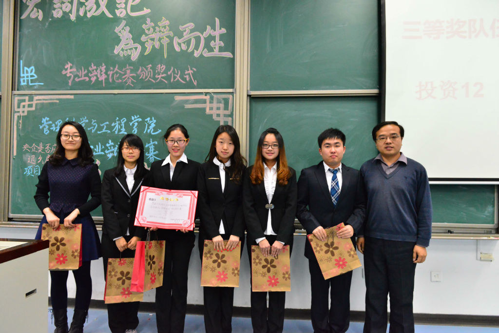 经过评为的认真评比,在现场师生的焦急等待中,主持人揭晓了比赛结果,管科13班最终凭借他们准确的立论、清晰的思路和良好的团队合作,赢得了评委的认可,摘得桂冠,项目13获得亚军。同时,项目13的周冰玉以其严谨的逻辑、清晰的表达被评为决赛最佳辩手。贺小海老师在比赛结束后的致辞中,表示本次比赛是公司历史规模最大的专业辩论赛,通过这样的比赛引导同学们关注专业理论和市场运行实践,倡导同学们发现专业兴趣、培养专业精神。贺老师寄希望于这样的比赛今后要继续办下去。