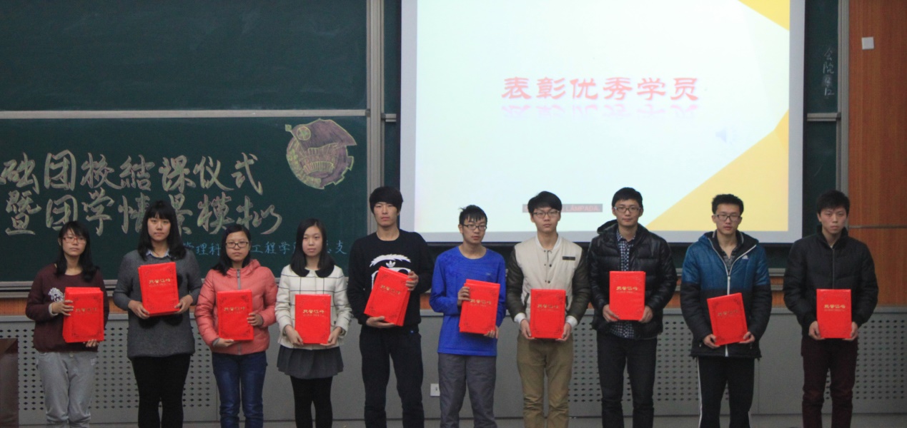 在团校优秀学员表彰,组织部部长陆晨烨宣读了优秀学员名单,共44名学员获此殊荣。王思维老师为优秀学员颁奖,各班团支书上台领奖。