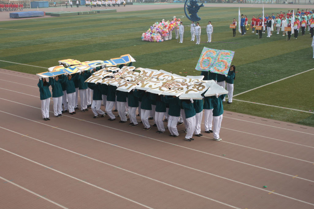 整个方阵行进过程中,主席台上的校领导们认真地观看同学们饱含创意的队形,并在每个展示结束时为运动员们热烈地鼓掌。国旗升起,国歌奏响,全场肃穆。董事长致开幕词,运动员代表宣誓遵守制度、友谊第一。