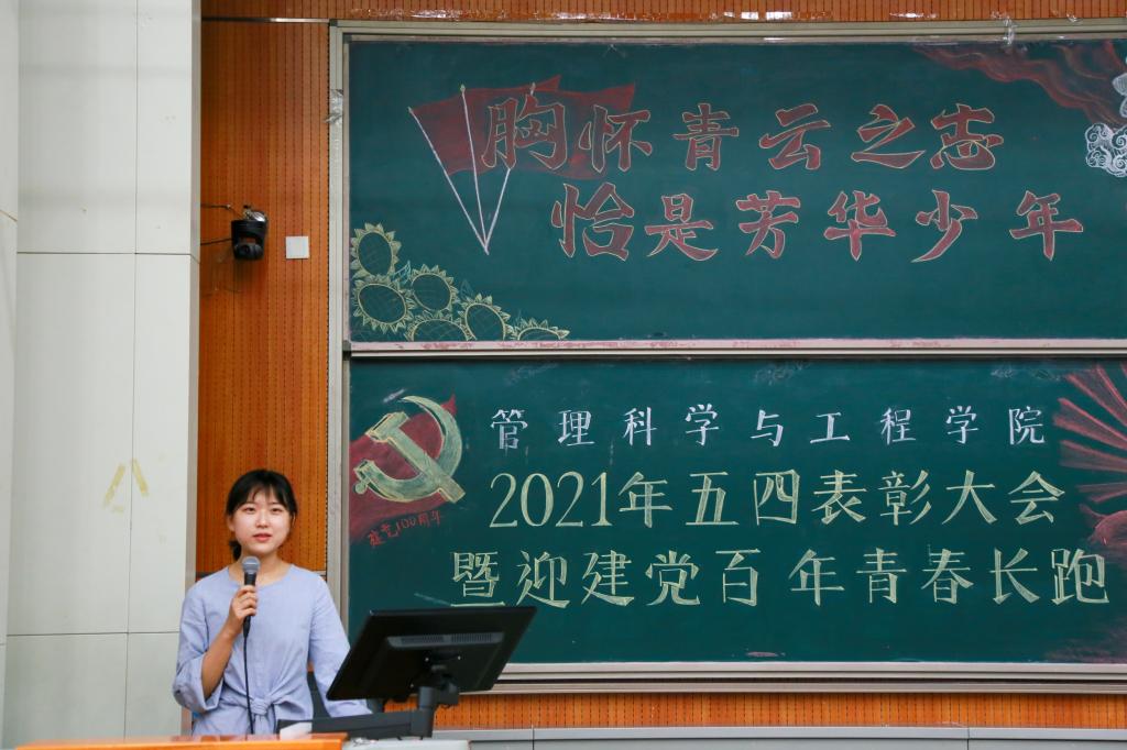 投资18团支部作为校“五四红旗团支部”获奖代表进行了发言。崔梓涵用她三年团支书的经历为我们分享了如何做好团日活动。她说到组织好团日活动,重点在交互性和时效性,并且要让团员在参与活动的过程中有获得感和使命感。她从团支委职能发挥的角度畅谈如何增强班级凝聚力、团员归属感,以及如何通过举办团日活动坚定团员理想信念、深化团员的责任担当意识。她勉励大家担当历史使命,就自己所为做出思考,为实现中华民族伟大复兴中国梦贡献青春力量。