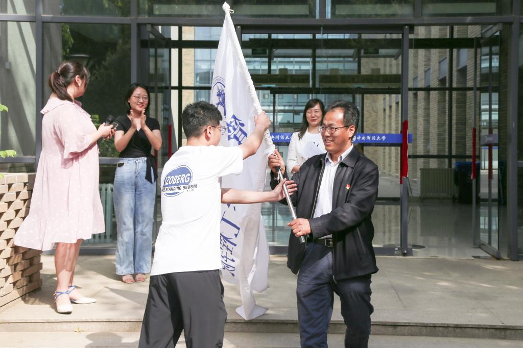 最后,大会上演了以“南陈北李,相约建党”为主线的历史情景剧。同学们亲身扮演陈独秀、李大钊等革命家。声情并茂、充满激情的表演仿佛把观众带回了那个奋进的年代,引起台下热烈掌声。一曲《不忘初心》,在场师生们自发跟唱,挥舞手中的红旗。在动听的旋律和舞团精彩的舞蹈中,五四表彰大会画上了圆满的句号。