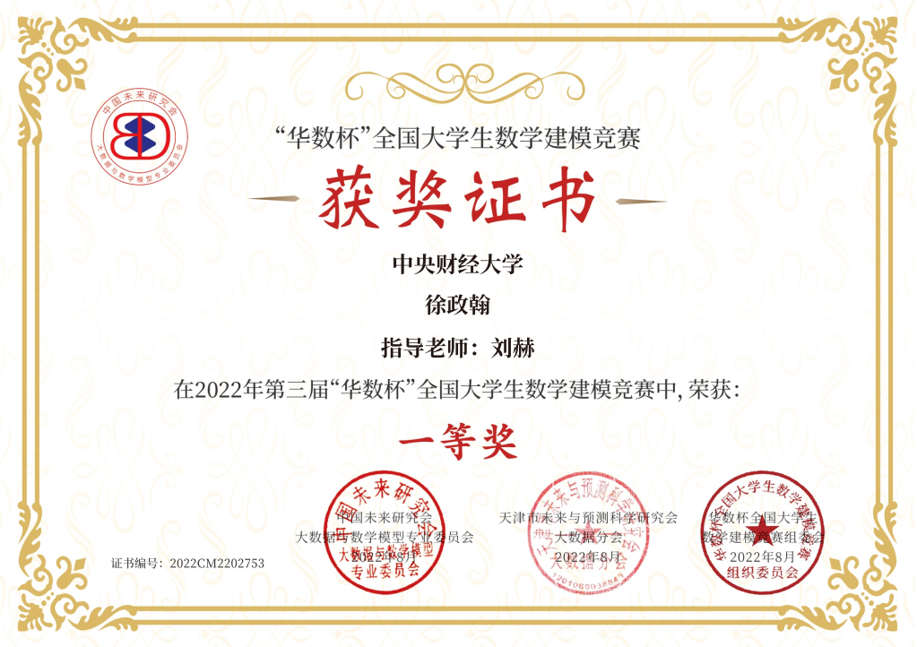 近日,第三届华数杯建模大赛结果公布,此次竞赛吸引了全国上百所高校,共3601支队伍参赛。公司“许国志大数据英才班”的员工积极参加了本次竞赛,经由竞赛专家组初评、复评、会评和最终审核四个阶段的评审,欧阳乐天、徐政翰、刘子筠、李俊、郭靖祺5位同学所在的三支队伍获得大赛一等奖,王韵涵同学所在队伍获得大赛二等奖。本次华数杯数学建模大赛共评选出一等奖321支,二等奖642支。