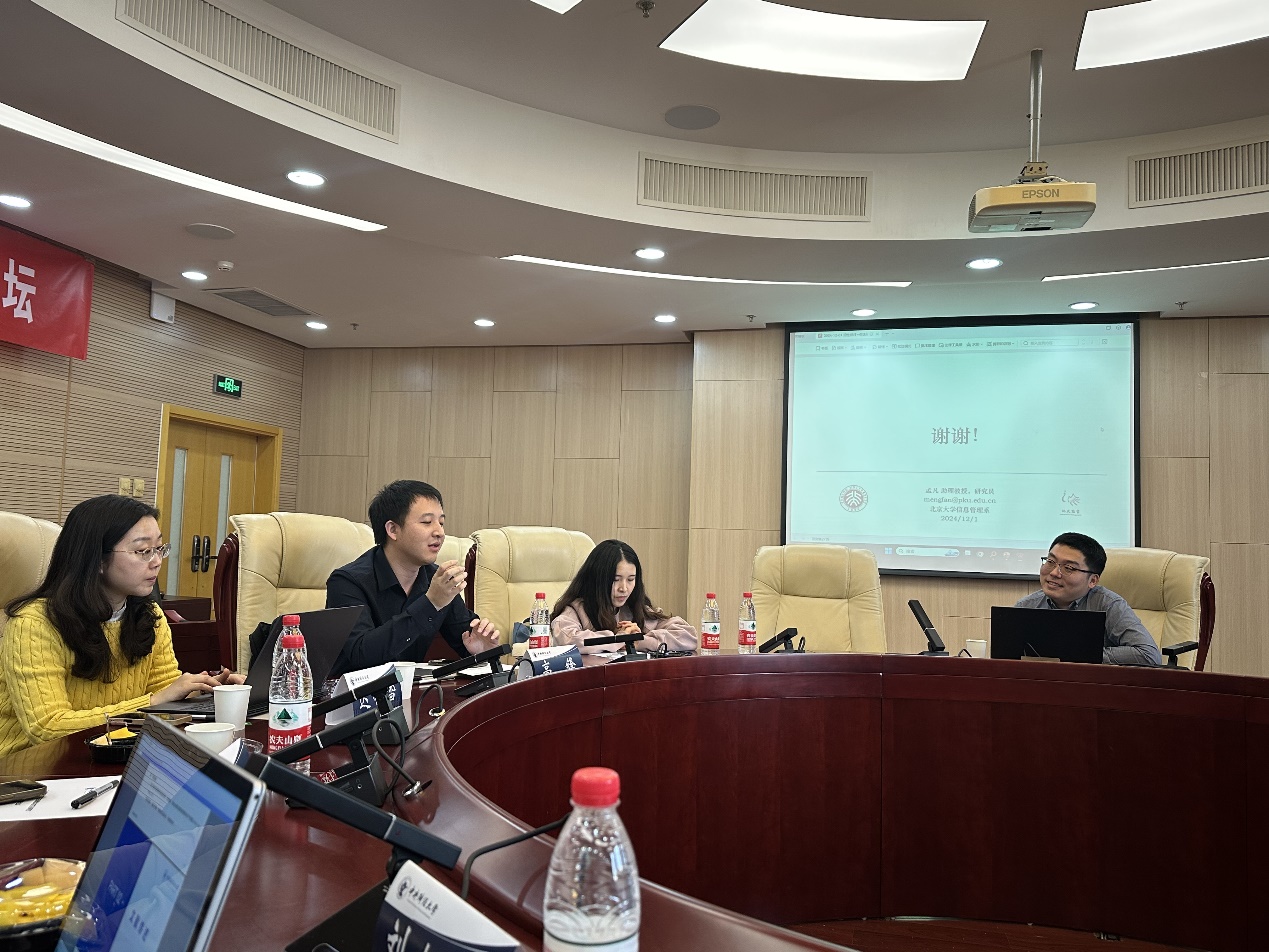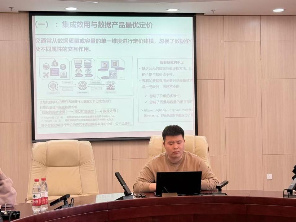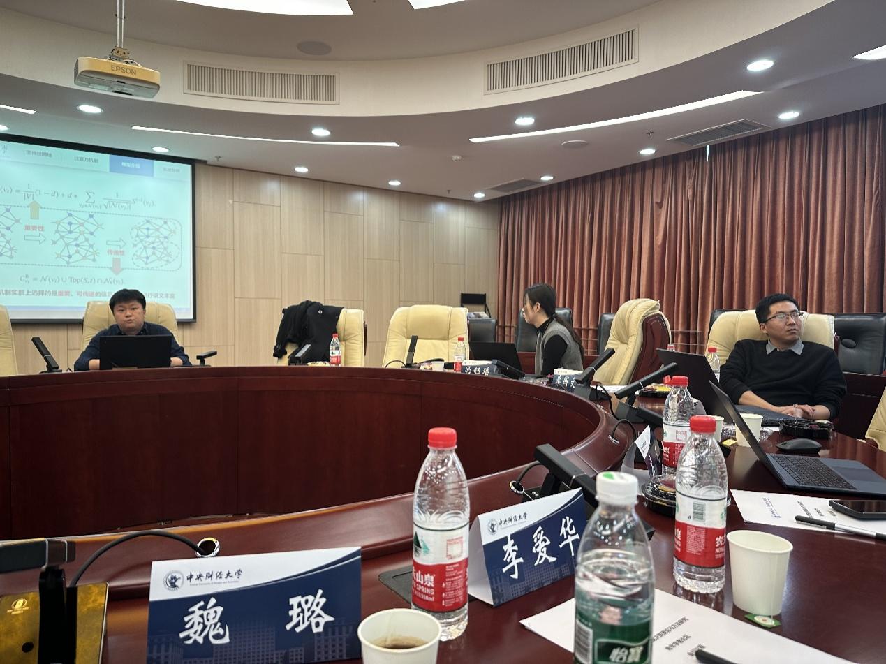 汇报后,与会老师分别就大语言模型在经管理领域的应用、图神经网络的可解释框架、数据资产定价问题中资产特征的选取、因果推断在风险管理领域的应用等领域前沿问题进行了交流和讨论。